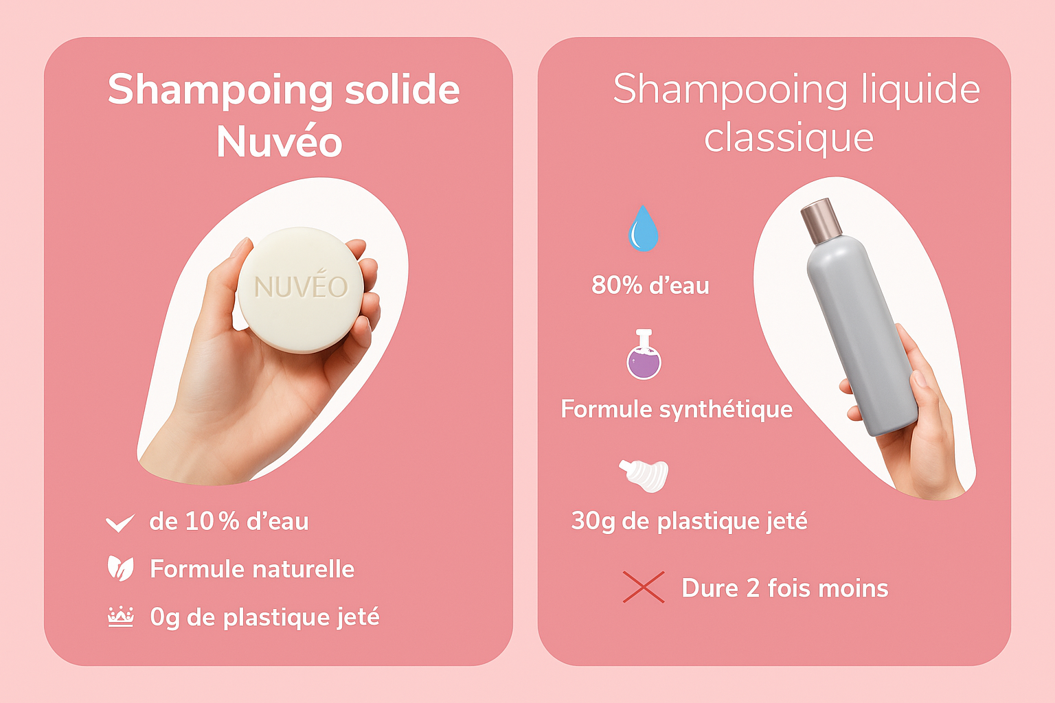 Notre shampoing Nuvéo, enrichi en ingrédients 100% naturels, prend soin de votre cuir chevelu tout en revitalisant chaque fibre.
